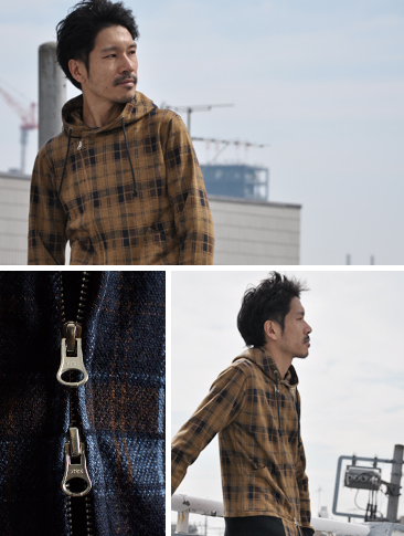 ジップパーカー特有の気楽さは、斜めジップになっても変わりません。気楽に羽織れる仕上がりが魅力です。