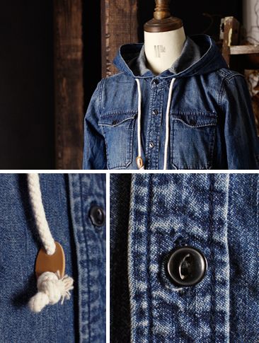 ディティールが一味加えるデニムフードシャツ