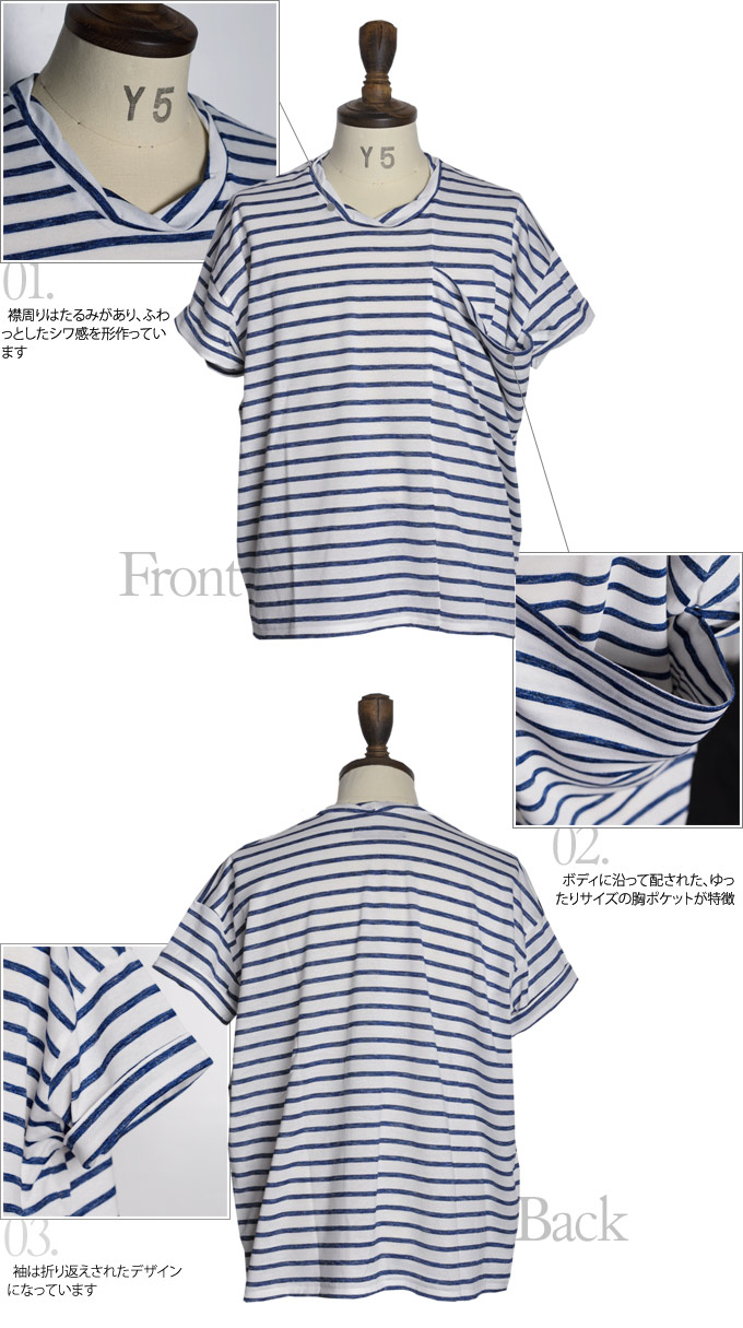 ふんわりとした柔らかさとさらりとした肌触りの“セーグルボーダーシルケット”素材を使用した、ゆったりサイズ&大きめポケットのカットソー。
