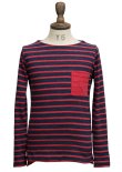 スペック天竺切替ボーダーボートネックポケ付き長袖カットソー / Upscape Audience [AUD1469]