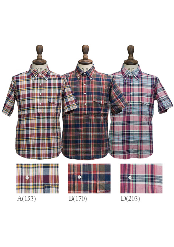 鮮やかな柄が特徴的なマドラスチェック生地をプルオーバースタイルのシャツにまとめました。