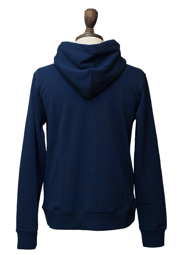 スタンダードなデザインのフードに丸紐、安心のYKK社製ダブルジップ、リブの付いた袖と裾など、王道らしいデザインにまとまったジップパーカー。