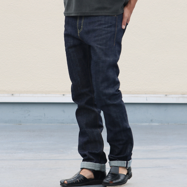 ヴィンテージデニムの魅力の一つとして挙げられる"セルヴィッチ(赤耳)"。その魅力を現代の技術・トレンドで表現したタイトデニムパンツがこの製品です。
