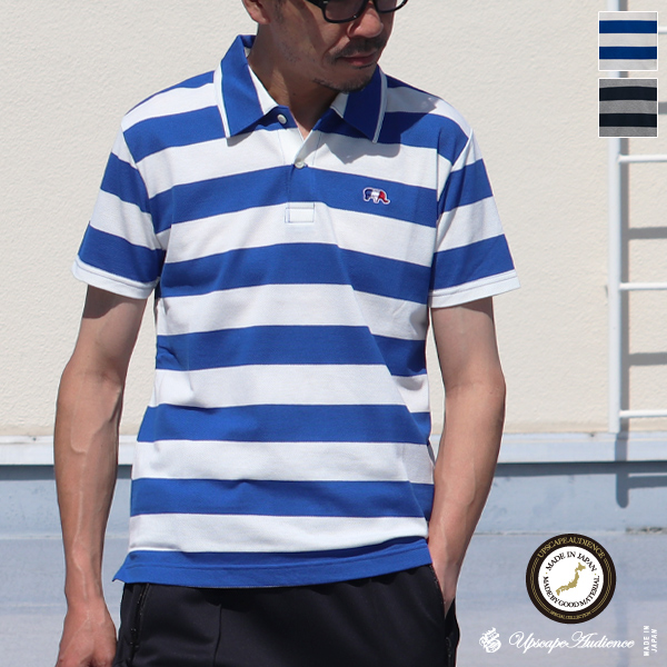 【RE PRICE / 価格改定】鹿の子太ボーダーエレファント刺繍ワイドスプレッドカラーポロシャツ【MADE IN JAPAN】『日本製』/ Upscape Audience [AUD1554]