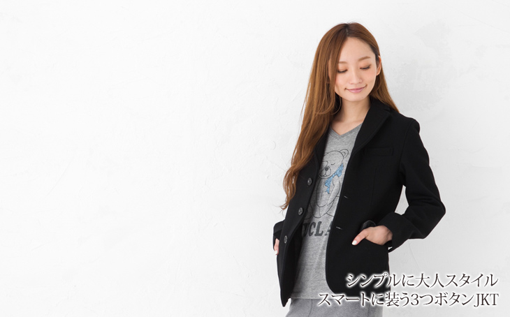 フロントに3つのボタンを配し、シンプルなラペル襟のテーラード風ジャケットを形作りました。