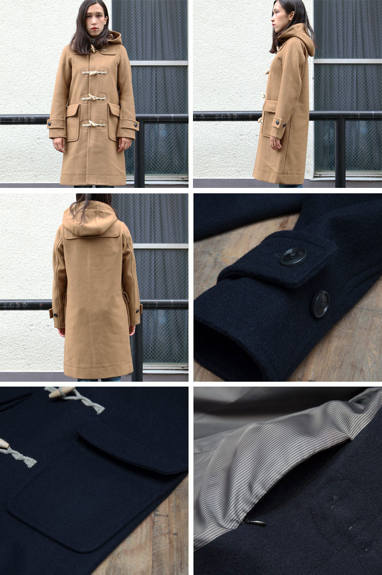 漁師の防寒着や海軍の艦上着であったダッフルコートをモチーフに当時のようなディティールの味を活かしながら現代的なパターンへと進化させたアイテムになります。
