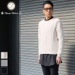襟はクルーネック仕様で、シャツをインナーとして着ても、襟が外に出ないようなアイテムと組み合わせて着てもOK。