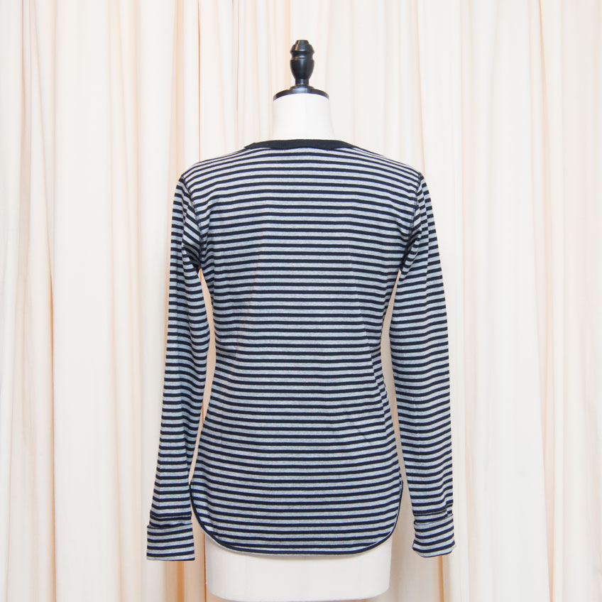 高密度シルケットボーダーガゼットプロテクトボッシュクルーネック長袖カットソー [Lady's] / Upscape Audience [AUD1726]