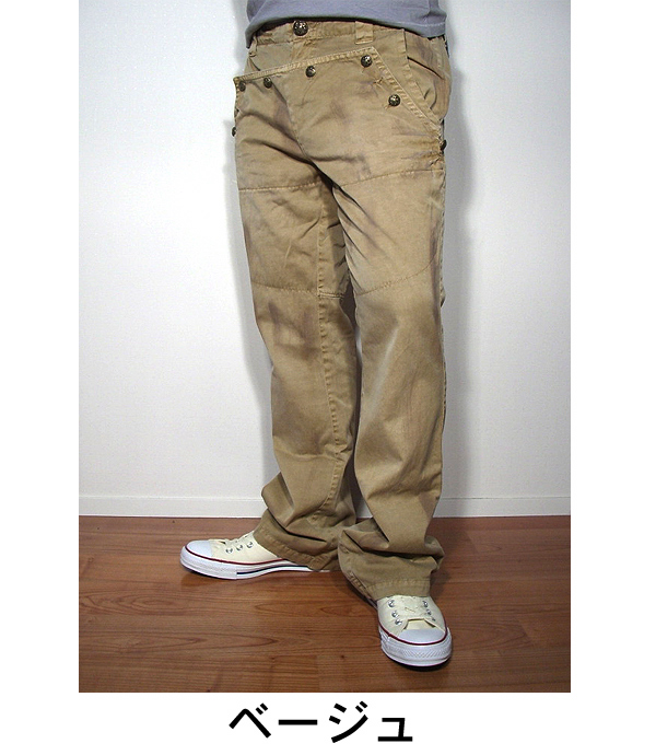 L SIZE: ウェスト88cm、股上27.5cm、股下81cm、ワタリ巾31cm、裾巾24cm