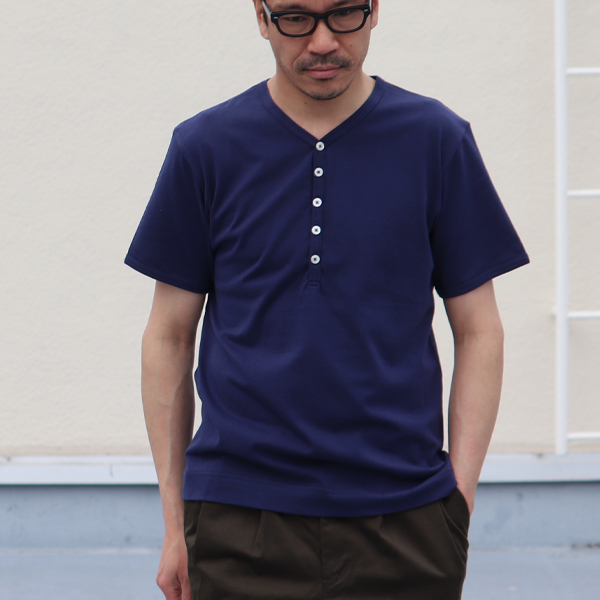 コットン特有のしなやかで柔らかいツヤ感の"コーマ天竺"素材を使用したヘンリーネック半袖カットソー。