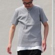 独特の凸凹のあるワッフル素材をヘンリーネックのカットソーに仕上げました。定番人気の素材感は迷わず着回せる汎用性を持ち合わせています。