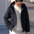 アウトドアの持つ機能美のスタンドネックや止水ジップ、ドローコードなど以外は、なるべく無駄を省き、メルトンの素材感と機能美の両方を表現した一枚となります。