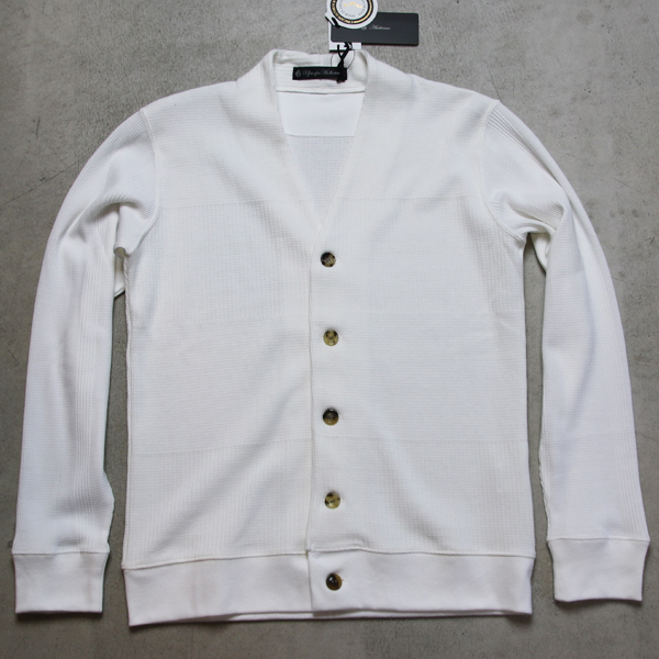 【RE PRICE/価格改定】BOROライク ランダムワッフルランダム釦 モックVネックカーディガン【MADE IN JAPAN】『日本製』 / Upscape Audience [AUD2739]