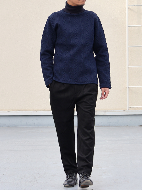 双方の良さを体感できる1着Upscape Audience Cable Fleece Lining Fleece Lining Turtle neck Sweat