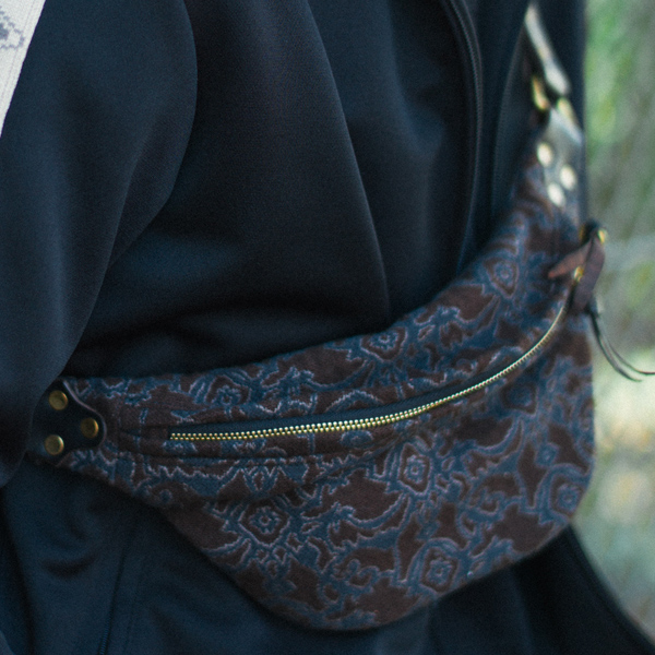 豪華で重厚感のある印象の生地が小ぶりなウエストバッグでも、その存在感を十二分に感じさせてくれます。レザーや真鍮は、勿論、vascoご自慢のプロダクト。長年親交のある両者が完成させたBagを是非、お試し下さいませ。