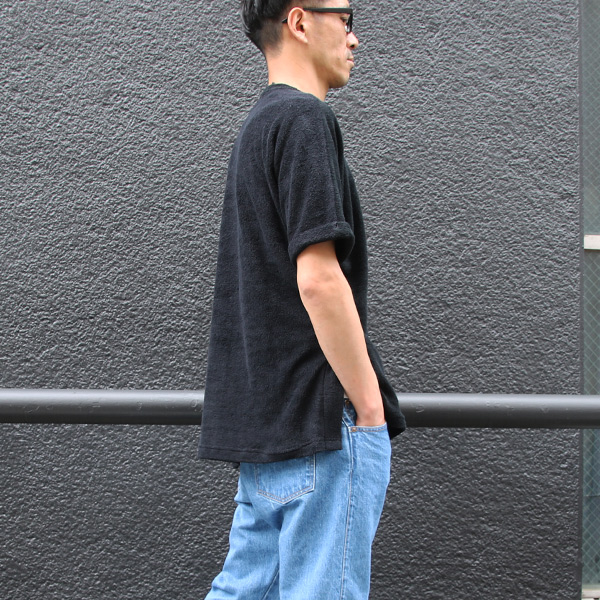 夏の必需品。Upscape Audience Long pile C/N Side slit roll up S/S Tee
