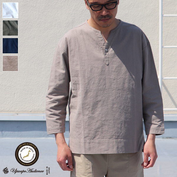 綿麻ビンテージソフトキャンバス C/N スキッパーコンチョ釦 9/Sシャツ【MADE IN JAPAN】『日本製』/ Upscape Audience [AUD6085]