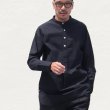 コットンクロスの柔らかく粗野な素材を使用したバンドカラーシャツ。
