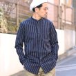 ストライプシャツUpscape Audience レジメンタルストライプルーズFITバンドカラー長袖シャツ