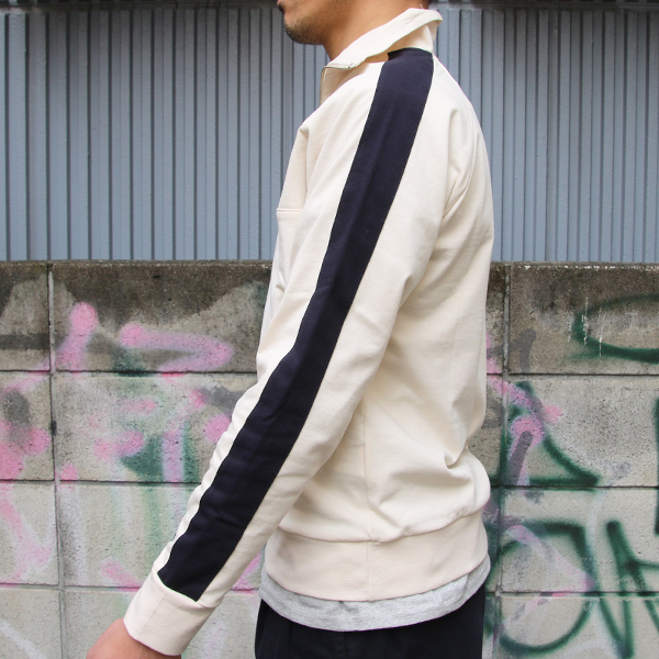AudienceではハーフZIPを採用し、サイドライントップスにする事で、よりトレンド感のあるトラックジャケットに仕上がっております。