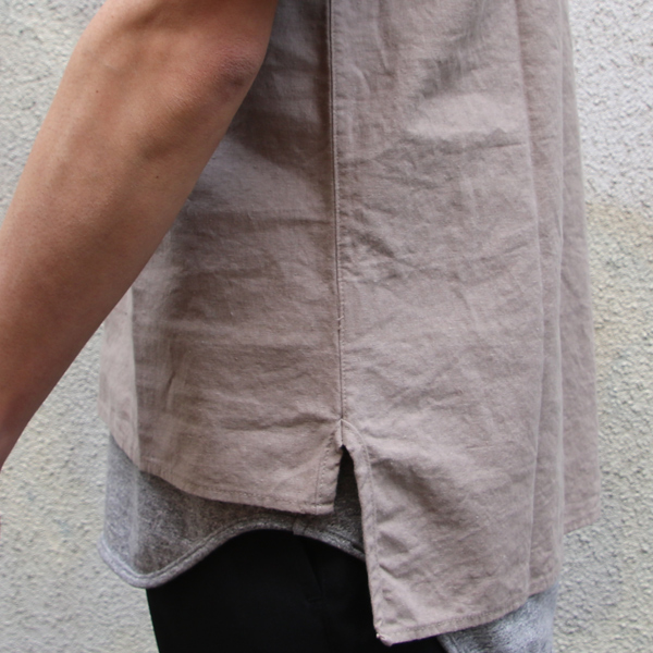 前後で着丈の長さが違うことで、インナーとのバランスに動きを与えてくれます。