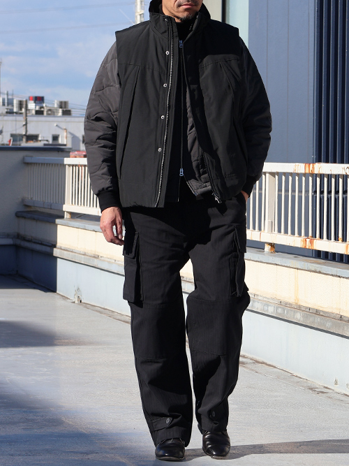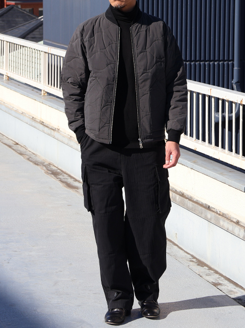 デッドストックのライナーアウターはどちらかと言えば、肌に近い生地感を考慮して薄手のナイロンキルトが多いと思いますが、テフロン加工のウエーブキルトは、水や汚れを防ぐ、また生地の厚さもタフですので、雨の日も雪の日もどんと来いのアウターとしておススメです。