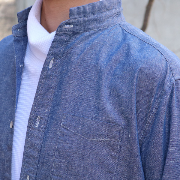 【RE PRICE/価格改定】コットンリネンダンガリー ローマシャツコート【MADE IN JAPAN】『日本製』/ Upscape Audience [AUD2779-DUNGAREE]