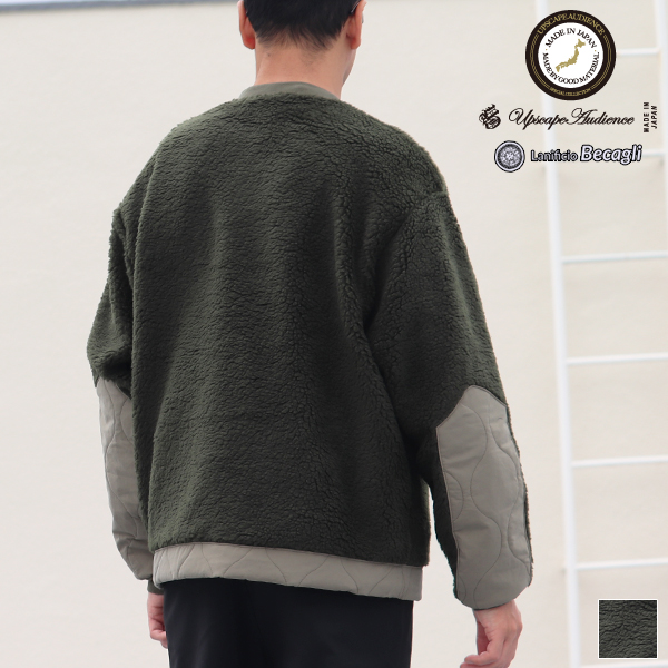 【Lanificio Becagli(ベッカリー)】トスカーナボア クルーネックプルオーバージャケット【MADE IN JAPAN】『日本製』【送料無料】/ Upscape Audience [AUD7038-OLIVE]