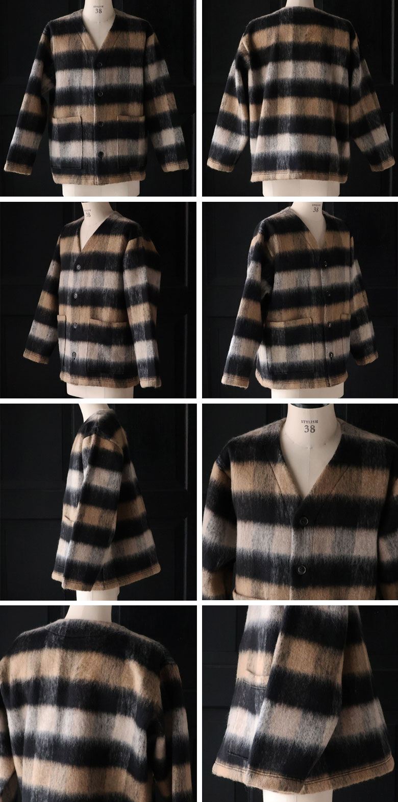 ECOLANA シャギーチェック ノーカラージャケット【MADE IN JAPAN】『日本製』【送料無料】 / Upscape Audience [AUD7339]