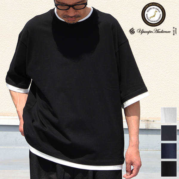 「丹後」度詰天竺 (6オンス) フェイクレイヤード クルーネック ハーフスリーブ Tシャツ【MADE IN JAPAN】『日本製』/ Upscape Audience [AUD6532]