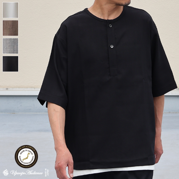 Naturemier™️(ナチュレミア)TECH リネンライク メランジクロス クルーネック スリーピング ハーフスリーブシャツ【MADE IN JAPAN】『日本製』/ Upscape Audience [AUD6530]