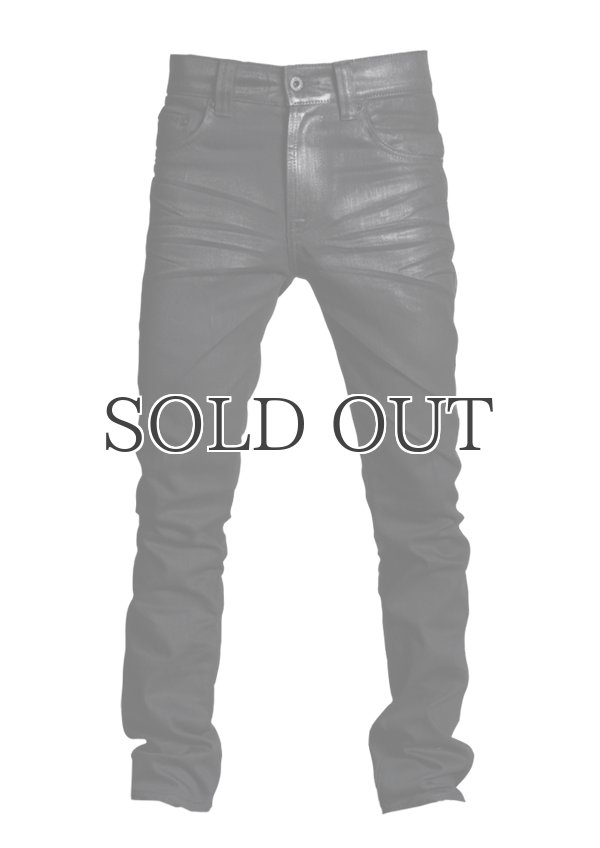 樹脂加工タイトフィットストレート黒×黒ストレッチデニムパンツ 【送料無料】 / Audience [AUD3093]