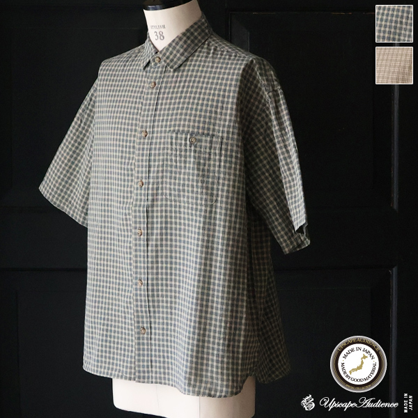 播州織 ドビーミニチェック レギュラーカラー ボクシーAライン ハーフスリーブ ワーク シャツ【MADE IN JAPAN】『日本製』/ Upscape Audience [AUD6602]