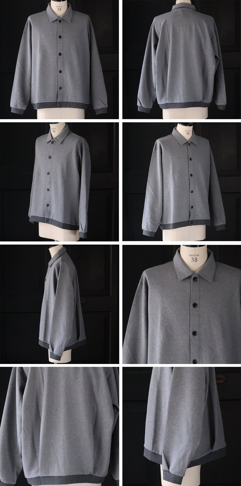 ポロシャツのような襟とボタンの前開きデザインが、ボタンを閉じても、開いても様になるアイテムです。