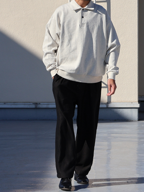 裾タック(後身頃)を2箇所施しており、バルーンような立体的なシルエットを生み出しているポロシャツです。