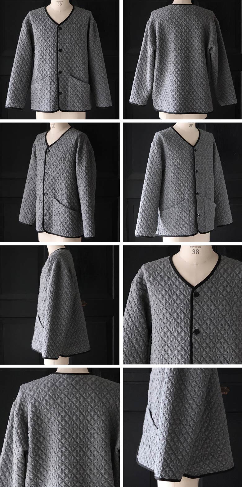 ライニングカーディガンをモチーフに作られたキルティングカーディガンです。