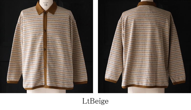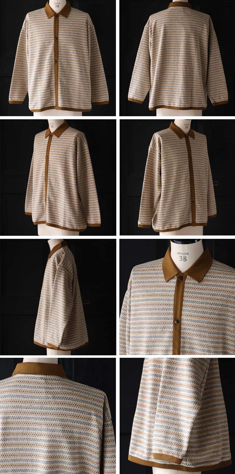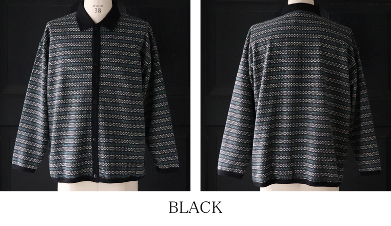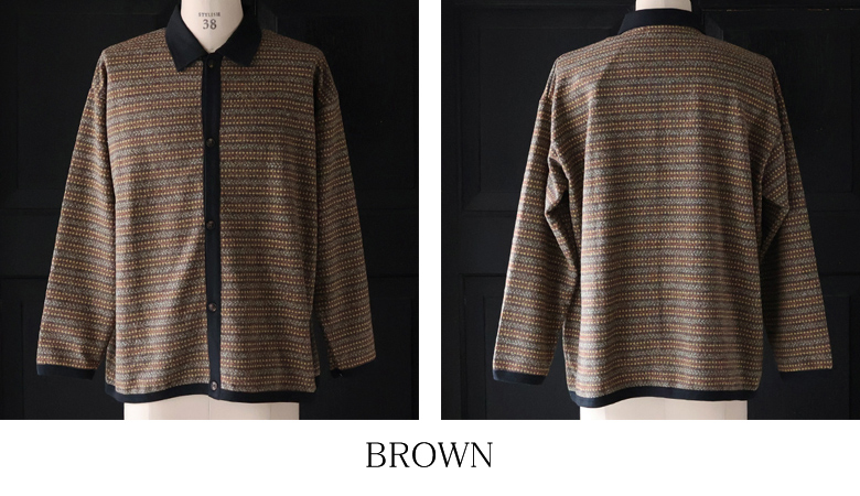 ジャガードニットソー「尾州」JAZZネップ マルチカラー ジャガード ポロニットソー カーディガン