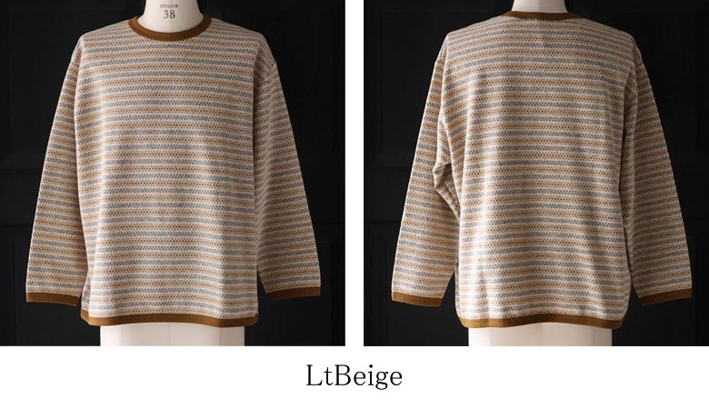 デザインとしては、首元、裾、袖は全てリブ仕様にて、マルチカラーの良さを生かす、クラシックなデザインです。
