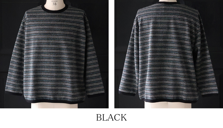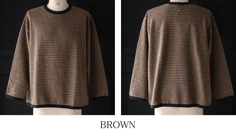 ジャガードニットソー「尾州」JAZZネップ マルチカラー ジャガード クルーネックニットソー