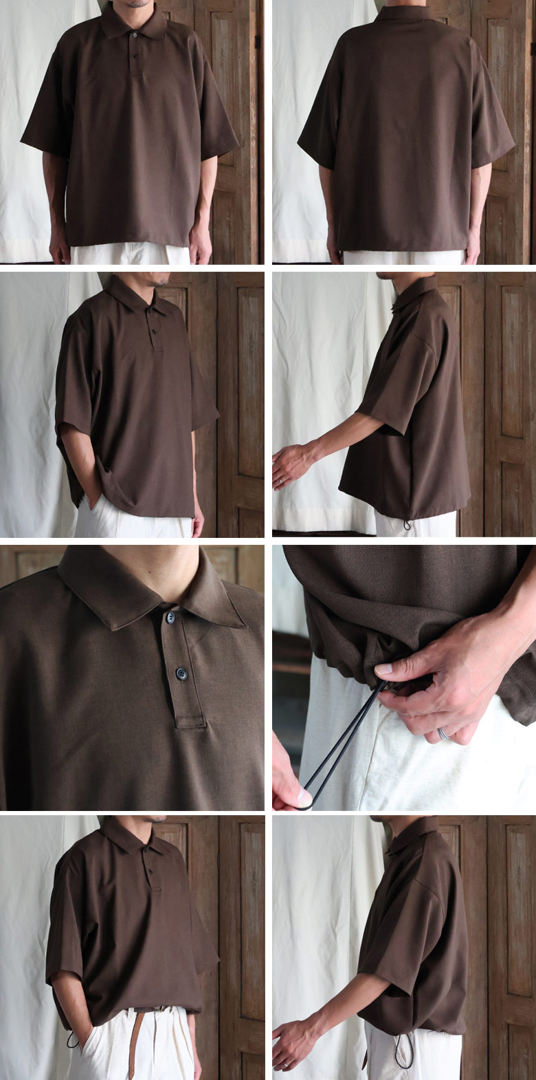 Naturemier TM (ナチュレミア) TECH リネンライク トロワッシャー ドローコード バルーン ハーフスリーブ ポロシャツ【MADE IN JAPAN】『日本製』/ Upscape Audience [AUD6691]