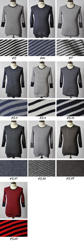 こちらの商品はご好評頂いているUネックタイプをクルーネックに落とし込み、ボーダー柄を一新したクルーネック7分袖Tシャツです。