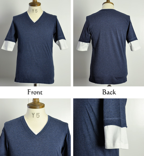 5分袖フェイクレイヤードVネックカットソー / Audience [AUD1218]