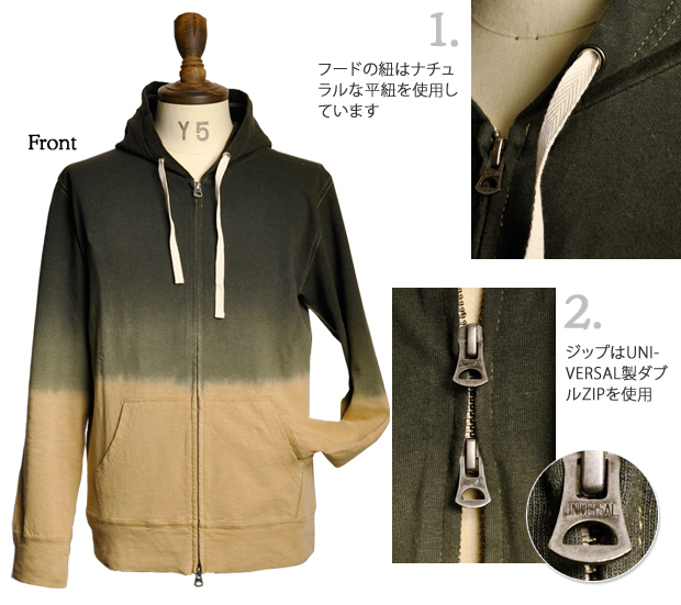 ヘンプコットン段染め長袖ZIPパーカー / Audience [AUD1313]