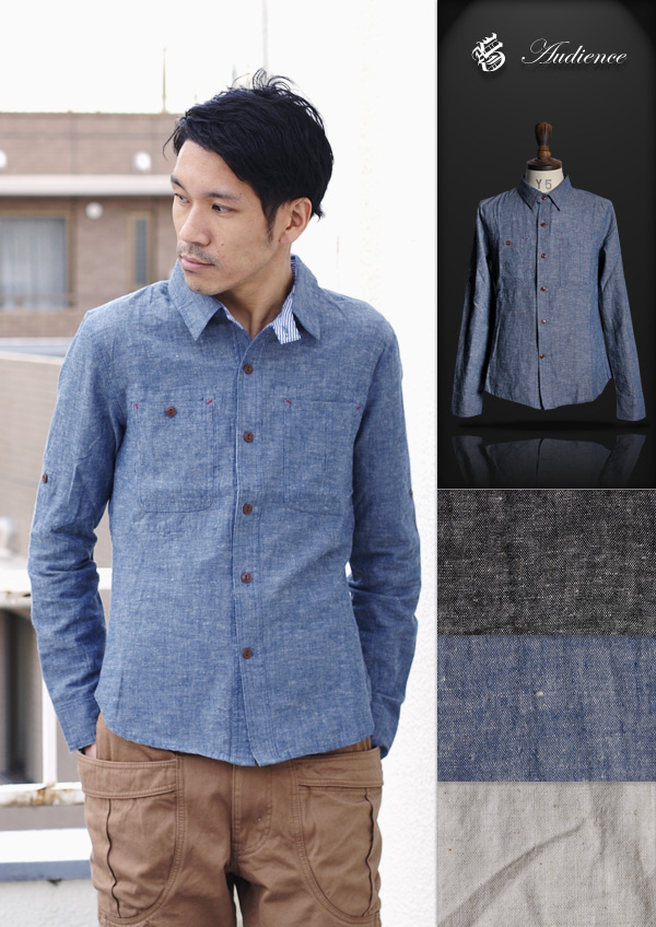 綿麻スラブダンガリー長袖ワークシャツ / Audience