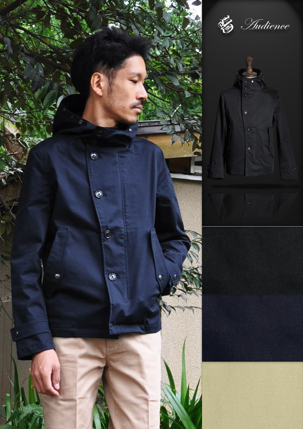 高密度サテンストレッチミリタリーフードジャケット / Audience
