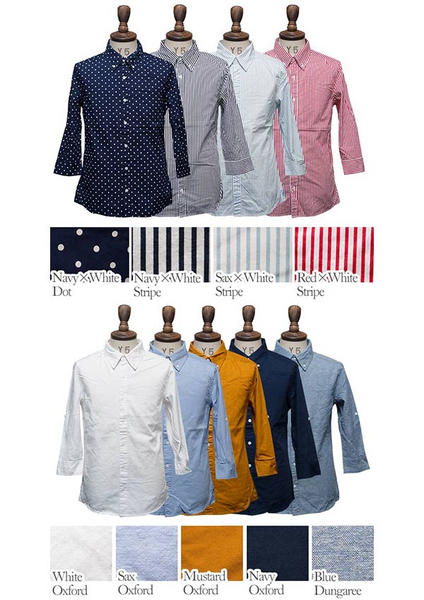 【17色展開!】ブロード/オックスフォード/ダンガリーシャーリングボタンダウンカラー7分袖シャツ / Audience