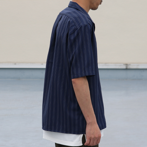 Reflax®(リフラクス)ポリエステル リネンライク LINON(リノン) ストライプオープンカラー ハーフスリーブシャツ【MADE IN JAPAN】『日本製』/ Upscape Audience