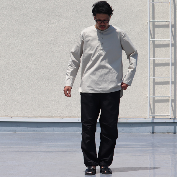 コットンギャバジンノーカラーP/O コンチョ釦L/SシャツTEE【MADE IN JAPAN】『日本製』/ Upscape Audience