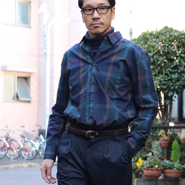 タイプライター 大判チェック ルーズFIT 裏前立 レギュラーカラー L/Sシャツ【MADE IN JAPAN】『日本製』/ Upscape Audience