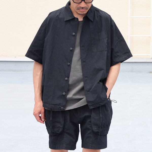 ピグメント 馬布 (ホースクロス) ドローコード バルーン オープンカラー ハーフスリーブシャツ / Audience